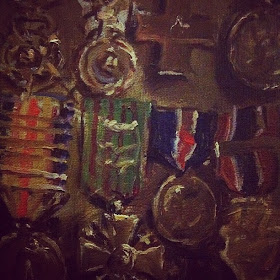 A detail of a portrait of John Lewis Barkley's uniform. The Missouri boy was declared the most decorated soldier of the Midwest.
